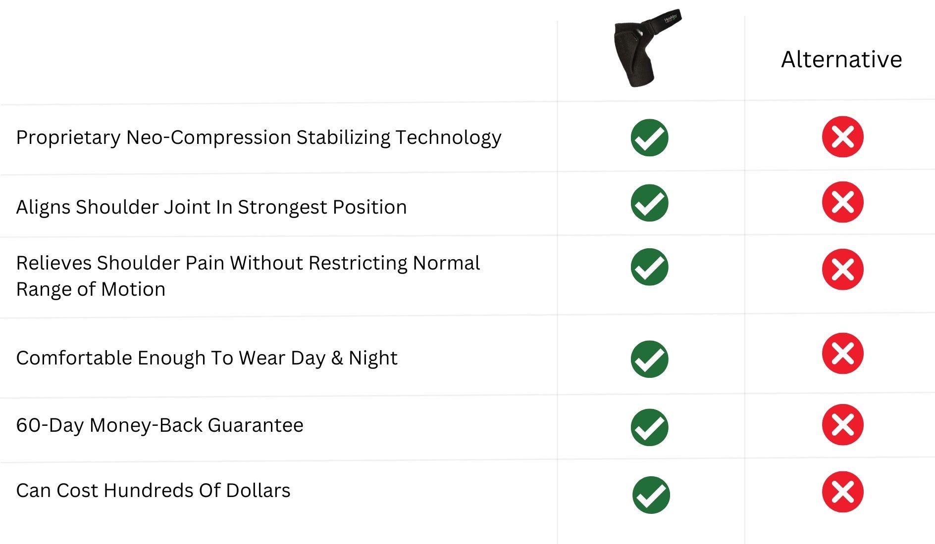 Bottom line: If you’re tired of living with shoulder pain… and if you want a safe and cost-effective way to get rid of it… then you should give the Compression Shoulder Brace a try!